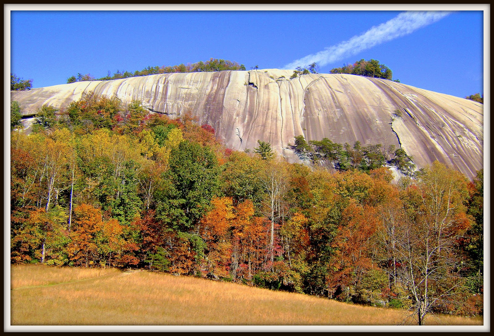Stone Mountain State Park in North Carolina is in Wilkes and Alleghany Counties. It rises about 600 feet out from the surrounding land and is at 2,305 feet above sea level. It is a great place to go camping, and hiking and to see a lot of deer.